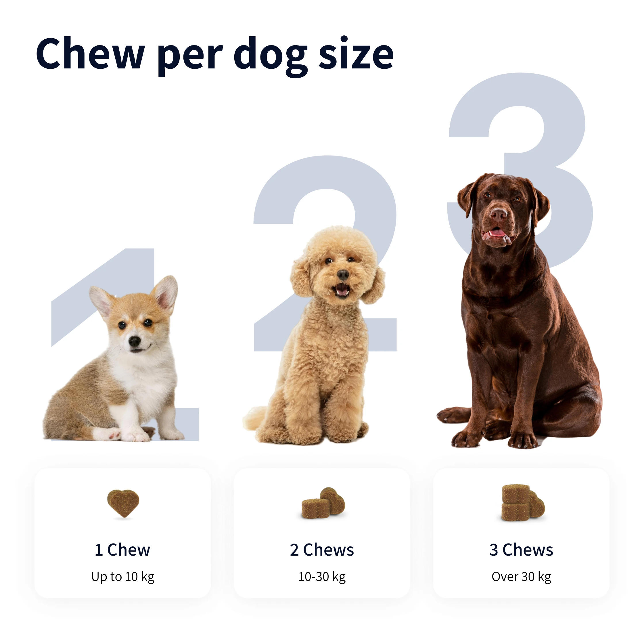 • Over 30 kg: 3 tyggeben dagligt